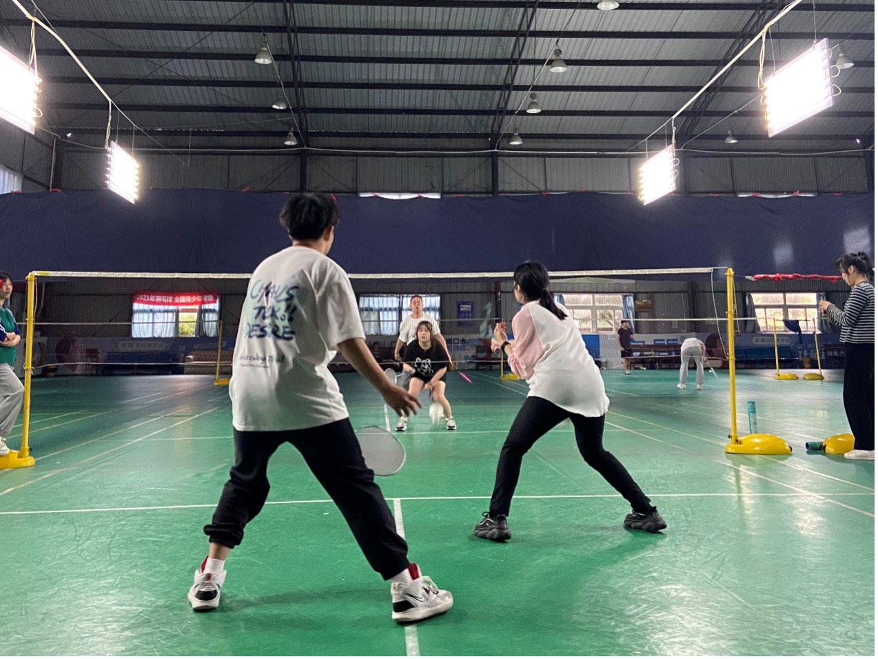 本次比赛经过了严谨的策划,在筹备组的充分讨论下确定了比赛流程和规则。3月31日13:40,全体参赛同学准时在兰花湖羽毛球馆集合,并以抽签的方式确定了比赛对手和出场顺序。在做了充分的热身运动后,比赛于14:00正式开始,此次比赛共有男单、女单、男双、女双、混双五个项目。首先进行的项目是混双,而后依次进行了男双、女双、女单的比赛,最后进行的则是最为精彩的男单比赛。