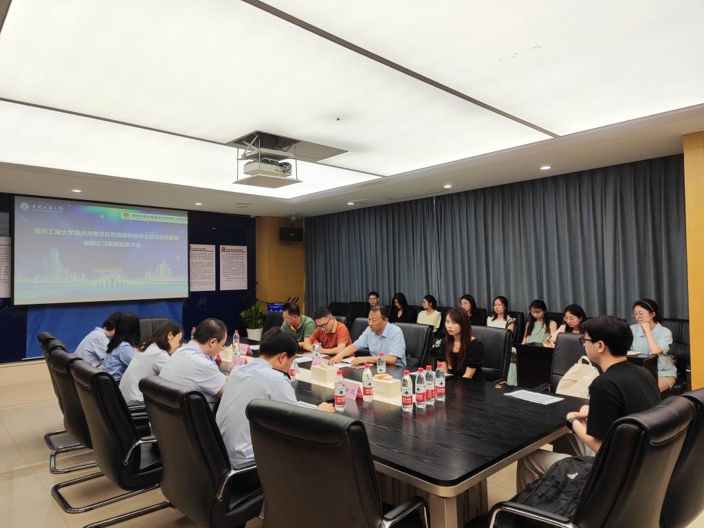 为了强化税务硕士研究生专业实践能力的培养,2023年7月7日上午,我校税务硕士教育中心联合国家税务总局重庆市南岸区税务局召开了2022级税务硕士研究生暑期实习实践动员大会。重庆市南岸区税务局纳税服务科科长林泉、税收风险控制科科长吴月、所得税科科长吴婷、第一税务所所长夏令、房地产税征收所所长谢新民,重庆市南岸区税务学会副会长肖智斌,437ccm必赢国际教务处副处长黄潇教授、437437必赢国际尚可文教授,以及参加实习的12位税务专硕同学参加了动员会。