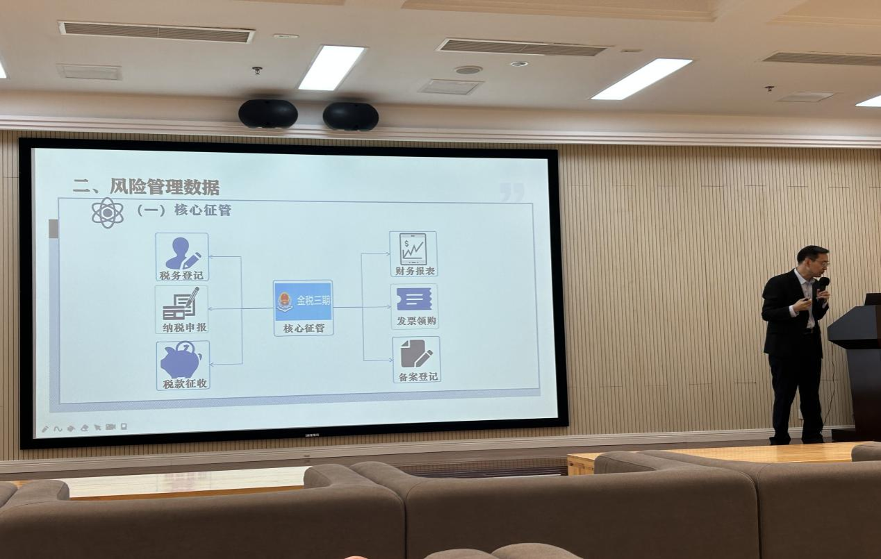 2024年4月26日上午,市税务局信息管理中心主任庞友奎受邀来我校为437437必赢国际2023级税务专硕和2022级税收专业同学开展专题讲座,此次讲座主题为“大数据在税收风险管理中的应用”。庞友奎老师是高级工程师、会计师,现任重庆市税务局信息中心主任,曾任黔江区国税局副局长、酉阳县国税局局长、酉阳县税务局局长。先后从事税收会统、税收征管、税收信息化等工作,原重庆《税网》征管软件核心开发人员。主要研究方向为税收征管、数理统计、大数据分析等,多篇论文被评为重庆市税务系统、重庆市税务学会、重庆市国际税收研究会税收科研成果一等奖,其中2篇被税务总局税收经济调研、税务总局研究报告采用。庞友奎老师有着20多年的从业经历,其丰富的工作经验以及对大数据税收风险管理方面的独特理解,为同学们开拓了大数据在税收风险管理中应用的新视野。此次讲座由汤凤林教授主持。