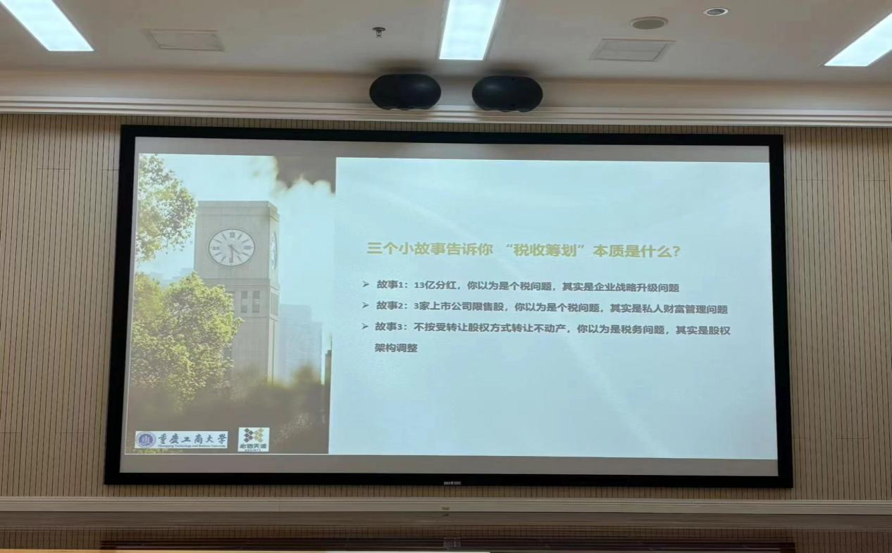 首先,张海军先生从范冰冰“阴阳合同”案、朱宸慧林、珊珊逃税案和郑爽逃税案向同学们介绍何为税收筹划,为何现在人们谈“税收筹划”色变,对税收筹划爱恨交加。税收筹划虽不是一项违法行为,但筹划的同时不应只顾眼前利益,应遵循合法合规原则,在充分考虑税务风险的情况下为企业合理减少税负、降低成本。张海军先生指出“税务筹划”实质是是一项管理工作:优化税务管理,服务企业战略。税负筹划并不是独立存在的,它是一个完整系统中的一个部分,任何脱离整体单独讲税收筹划的说辞都是耍流氓。