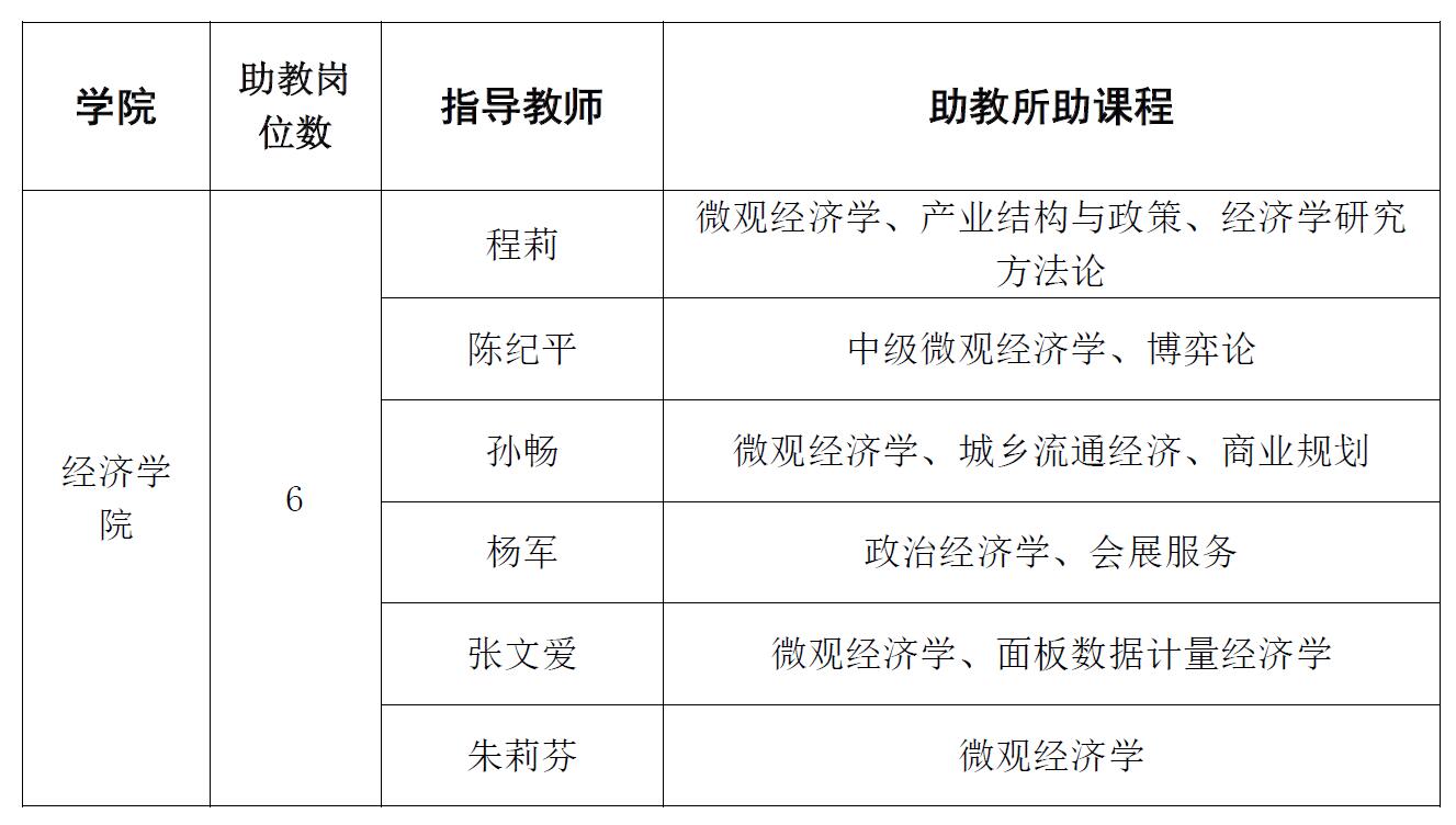 2017-2018学年第二学期研究生助教岗位已下达,我院有设有6个研究生助教岗位。按照“一岗一人”的原则,拟申报助教岗位的研究生即日起在长江上游经济研究中心贺老师处报名,报名截止日期为2018年3月8日17时。