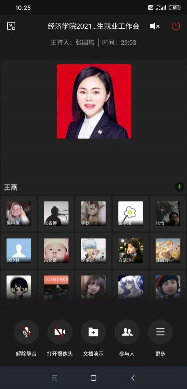 会议第一个议程,毕业生对自己目前的就业状态、就业意向做简短介绍,并明确了自己的就业方向。会议第二个议程,副书记、副院长王燕讲话。王燕书记针对当下的就业形势和班级同学的就业状态表达了三个方面的希望。一是希望研究生同学们开阔思路,正视自己。研究生处在更高的起点上,需正视自己的优势;当前就业形势严峻,需正视就业前景。二是希望研究生同学们树立正确的就业观,保持职业的连续性。职业生涯的空白是不可逆的,无法弥补,这将影响到个人未来的发展,因此毕业与就业之间的无缝衔接格外重要。三是希望研究生同学们能够恰当处理时间问题,协调好毕业论文写作与找工作两个方面的事情,抓住秋招的求职机会,做到论文、就业两手抓,两不耽误。最后王书记强调了疫情期间的安全问题,提醒同学们在找工作过程中做好个人防护。