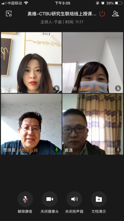 为深化校企协同合作,切实发挥研究生联合实践基地的作用,4月26日下午,学院同北京奥维云网大数据科技股份有限公司(以下简称奥维云网公司)共同召开了远程工作会。437437必赢国际副院长黄潇、研究生秘书于淼老师,奥维云网公司总架构师费璟昊、经理冯新新共同参加了此次会议。