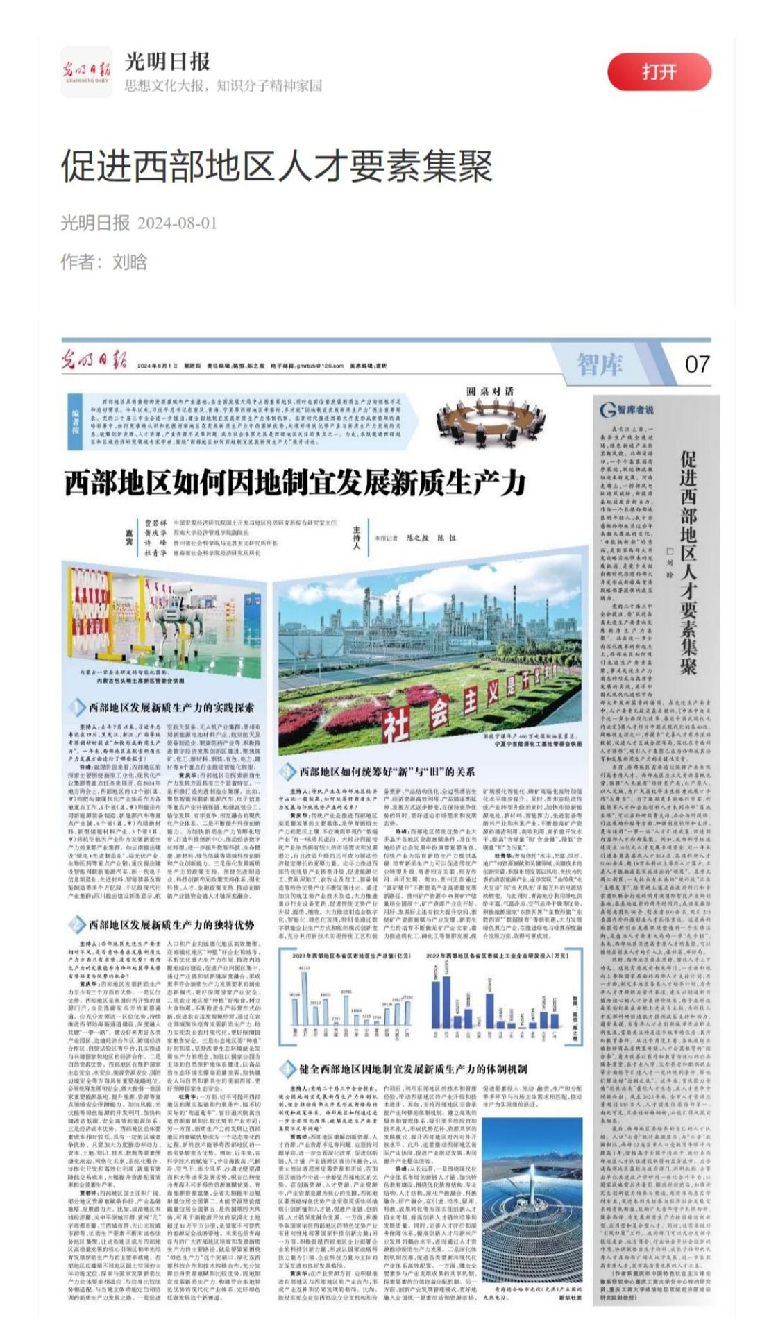 437437必赢国际刘晗副教授就促进西部地区人才要素集聚在光明日报上发表文章