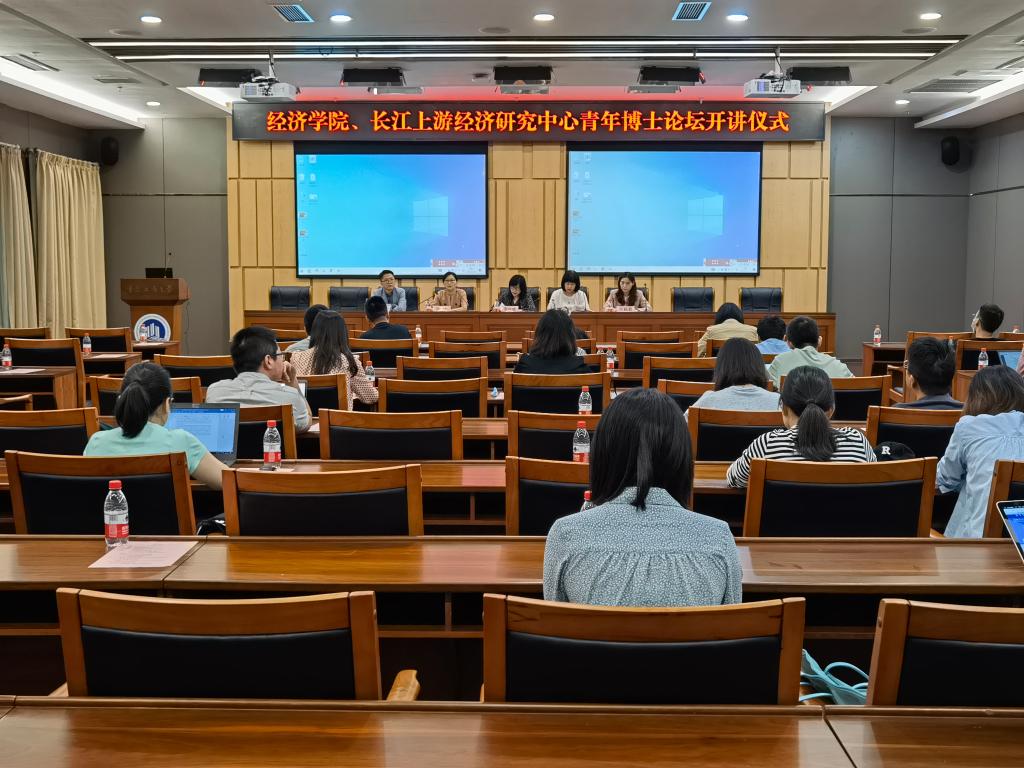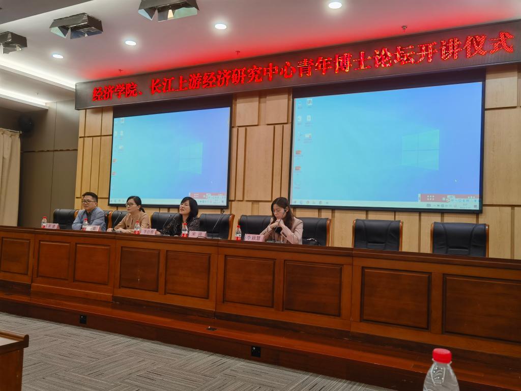 2022年5月27日上午,437437必赢国际、长江上游经济研究中心在图书馆第一会议室联合举办了“青年博士论坛”开讲仪式,437437必赢国际党委书记李自维、科研处处长任毅、437437必赢国际副书记副院长宋瑛、437437必赢国际副院长黄潇、长江上游经济研究中心主任助理李颖慧,以及437437必赢国际青年博士教师及长江上游经济研究中心博士生出席了开讲仪式。