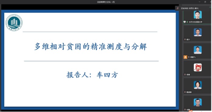 437437必赢国际青年教师车四方副教授做了《多维相对贫困的精准测度与分析》的学术报告。车四方副教授认为缓解相对贫困是实现共同富裕的基本前提,基于此车四方老师构建了包含心理健康、环境质量等维度的多维相对贫困指标体系,借鉴A-F贫困框架体系,利用中国家庭追踪调查(CFPS)数据,引入机器学习中的随机权神经网络(NNRW)方法,精准测度并分解了中国城乡间、区域间居民的多维相对贫困广度、深度和强度水平。最后车四方老师强调,无论是城乡间还是区域间,随着相对贫困维度的增加,多维相对贫困的广度、深度和强度指数呈下降趋势,表明发生极端多维相对贫困的居民逐渐递减。