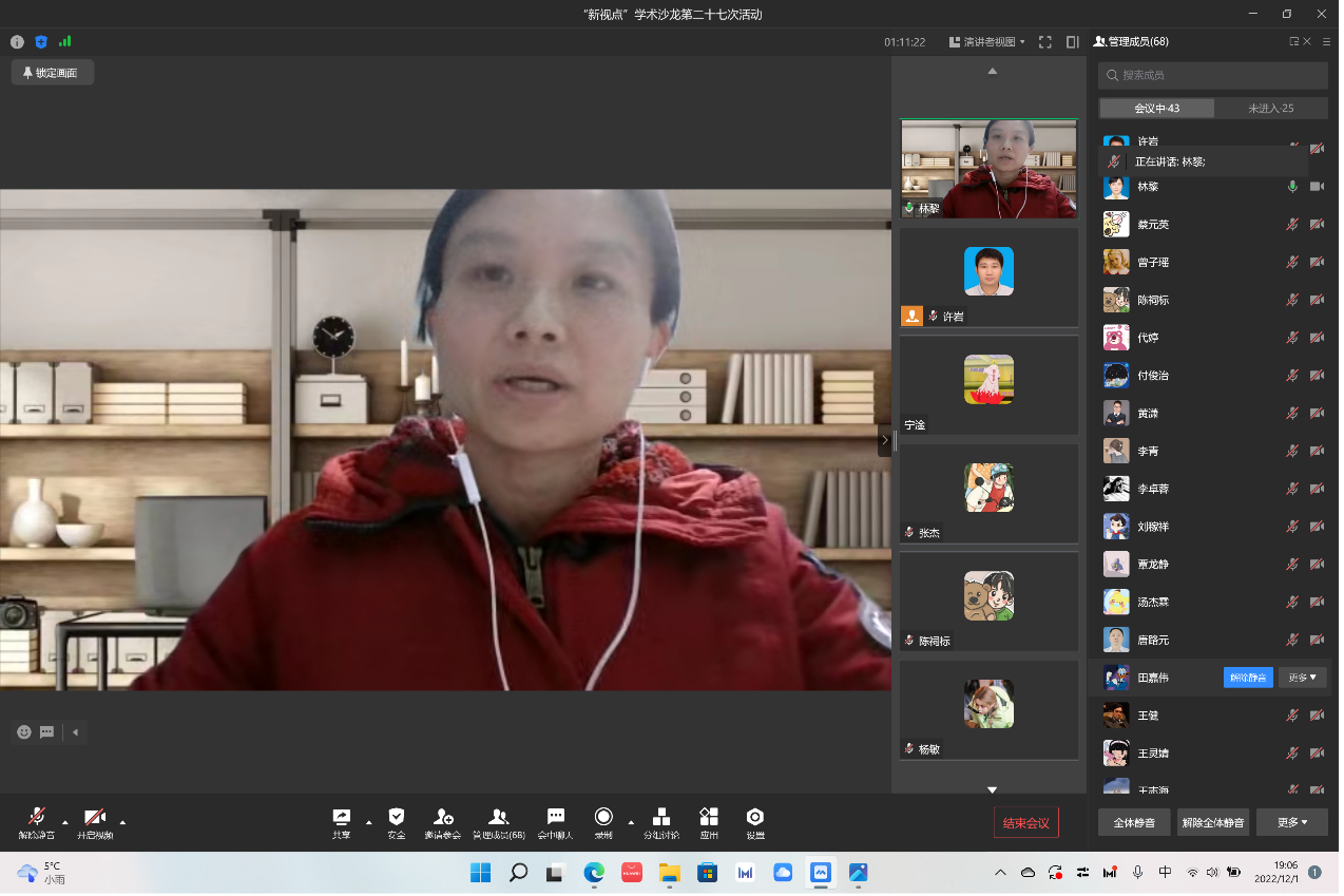 2022年12月1日,437437必赢国际第二十七次“新视点”学术沙龙,暨2022年度最后一次活动在企业微信线上进行,437437必赢国际院长宋瑛教授、教务处副处长黄潇教授、政治经济系主任林黎副教授以及许岩副教授与广大437437必赢国际研究生一起,开展学术研讨活动。