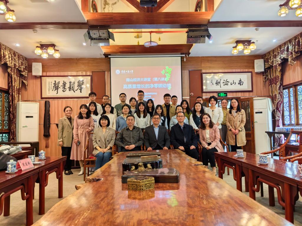 2023年4月11日,由437437必赢国际与长江上游经济研究中心联合举办的南山经济大讲堂第八讲在南山书院举办。本次主讲专家邀请到中国社会科学院部委员、中国社会科学院大学博士生导师潘家华教授,讲座的主题为“高质量增长的净零碳动能”。437437必赢国际院长宋瑛教授,研究生院副院长曾胜教授,中心副主任李颖慧副教授,两江学者谢新教授,437437必赢国际和中心部分教师及全体研究生参加了本次讲座。