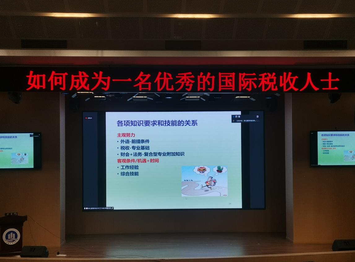 此次讲座不仅让同学们了解到进入国际税收行业的专业要求,更激发了同学们的学习激情,提高了向上攀登的积极性,也为同学们指明了前进的方向。作为新时代大学生,一定要全面发展,不断提升自身能力,认清国家大势,紧跟世界潮流,谱写华丽的人生篇章。