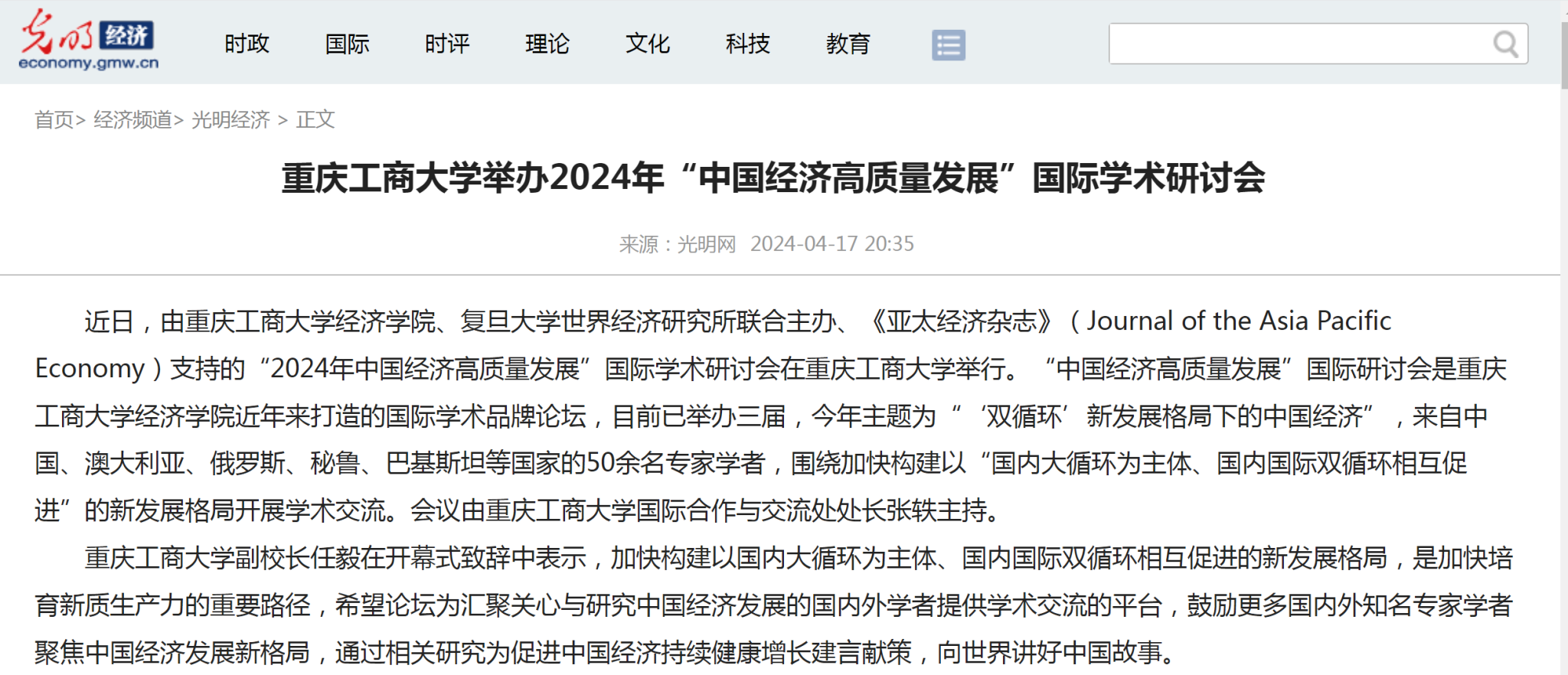 光明网、中国教育在线、新浪新闻、网易新闻等多家媒体报道我校召开的“第三届中国经济高质量发展国际研讨会”