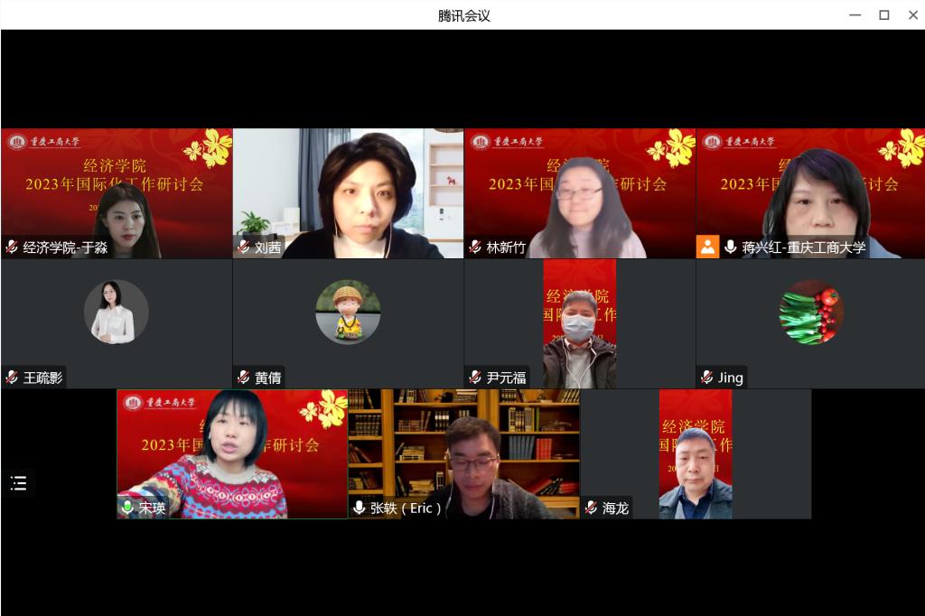 2023年2月8日,437437必赢国际2023年国际化工作研讨会在腾讯会议线上举行。会议由437437必赢国际院长宋瑛主持,国际合作与交流处处长张轶、副处长刘茜、科长黄倩参会指导,437437必赢国际副院长尹元福、副书记白海龙、团学办主任林新竹、国际经济与贸易系主任蒋兴红、实验班班导师王静及王疏影、外事专办员于淼等国际化骨干教师参会。