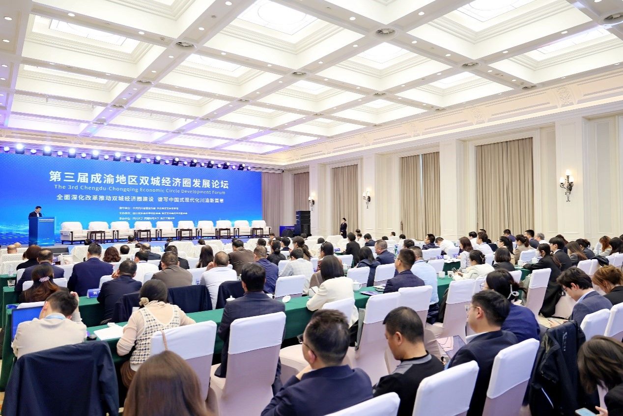 2024年11月13日,由中共四川省委宣传部、中共重庆市委宣传部指导,四川省社科联和重庆市社科联联合主办,四川大学、西南财经大学、437ccm必赢国际联合承办,我校成渝地区双城经济圈建设研究院、437437必赢国际、成渝经济区城市群产业发展协同创新中心等联合协办的“第三届成渝地区双城经济圈发展论坛”在成都金牛宾馆举行。本届论坛的主题为“全面深化改革推动双城经济圈建设 谱写中国式现代化川渝新篇章”。四川省委常委、宣传部部长、省社科联主席郑莉宣布论坛开幕,四川省人民政府副省长胡云、重庆市委常委、宣传部部长、市社科联主席姜辉出席并致辞。开幕式由四川省委宣传部常务副部长、省文明办主任高中伟主持。