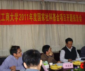 为了推进2011年度国家社科基金项目的顺利开展,在科研处的大力支持下,经济贸易学院于10月19日在学院会议室召开了国家社科基金项目开题报告会。邀请了重庆社科规划办傅剑秋主任,重庆市财政局政策研究室李美华主任,重庆大学经济管理学院陆静副教授、我校科研处处长余兴厚教授、长江上游经济研究中心主任文传浩教授参加。会议由学院副院长姜鑫主持。科研处夏宇老师,课题负责人刘成杰博士、徐慧博士、熊维勤博士,以及学院其他青年博士、教师,各年级研究生参加了此次报告会。