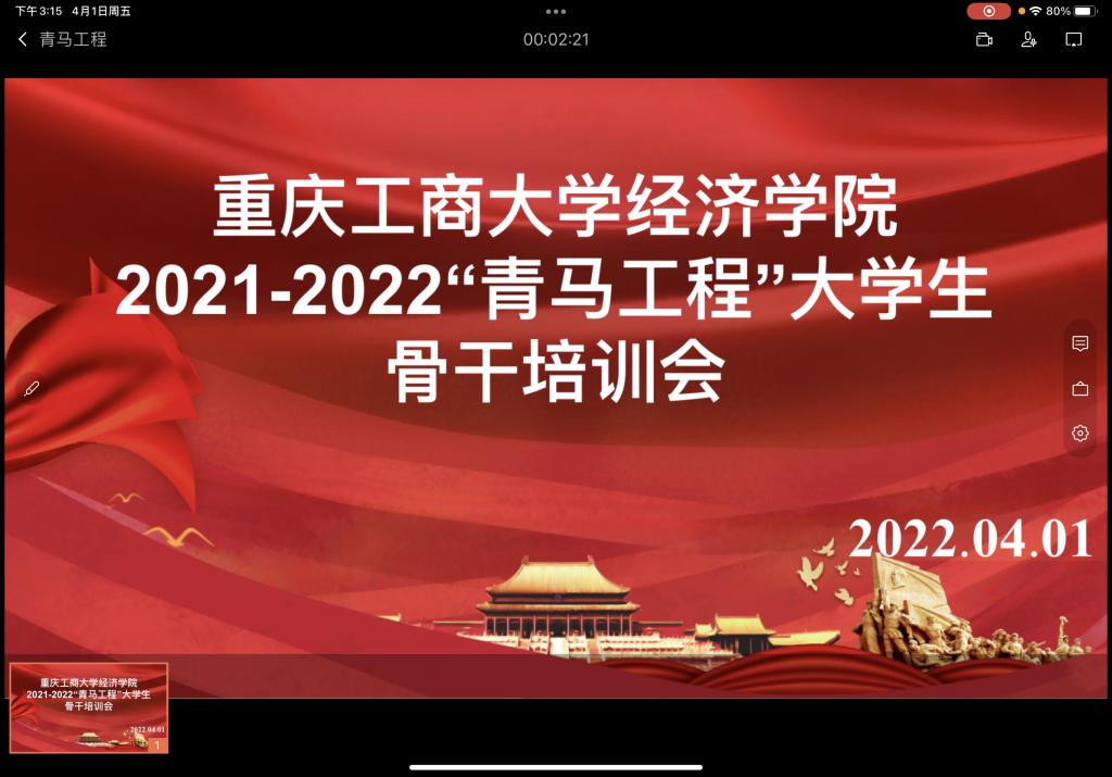 为深入贯彻习近平总书记重要讲话精神、落实团中央《“青年马克思主义者”培养工程实施纲要》文件精神,提升我院学生干部政治素养、理论水平。4月1日,437437必赢国际分团委组织全院学生骨干在博智楼302教室进行了2021-2022学年第二学期青马工程培训之“学党史,明信念,担使命”思想教育。为遵循学校疫情防控规定,会议采取了线上线下同时召开的模式。培训会邀请了管理科学与工程学院封海粟老师、校团委基层组织建设部陈琛老师、以及马克思主义学院魏新欣博士担任培训教师,课程包含演讲口才提升、学生干部综合能力提升、学习理解“四史”历史中的重要问题等相关内容。