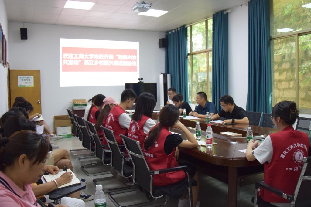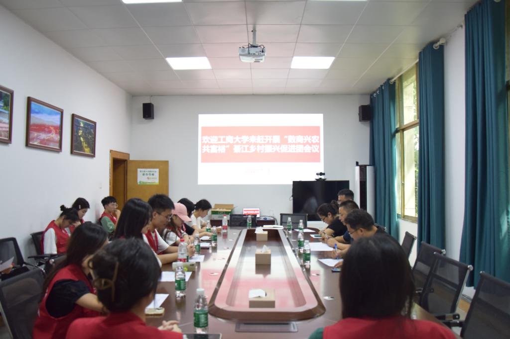 为深入学习宣传贯彻习近平新时代中国特色社会主义思想和党的十九届六中全会精神,贯彻落实习近平总书记关于青年工作的重要思想,深入学习习近平总书记在庆祝中国共产主义青年团成立100周年大会上的重要讲话精神,坚定信念听党话、跟党走,迎接党的二十大胜利召开,437437必赢国际号召、组织全院学生开展2022年大学生志愿者暑期“三下乡”社会实践活动。2022年7月8日下午437437必赢国际“数商兴农共富裕”綦江乡村振兴团走进綦江区赶水镇开展乡村振兴社会实践活动。赶水镇党委书记赵亮、镇长龚钦龙、官田村书记若任天伟、石房村书记张祥文、南坪村书记周在忠、盐河村书记罗德均、双龙村书记王梅以及麻柳村书记游永秀负责对接并参与此次启动会,鄢金宏副镇长主持会议。