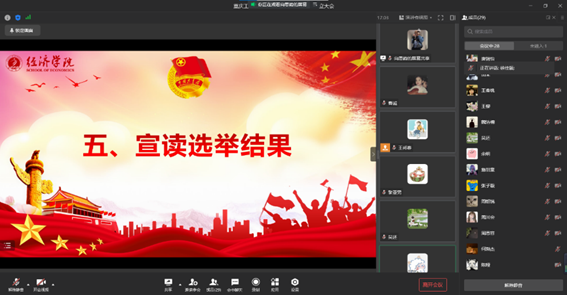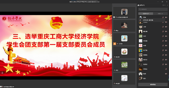首先,主持人宣读了《关于同意成立437437必赢国际学生会团支部的批复》,并向与会人员介绍了学院学生会团支部的基本情况。紧接着,按照《共青团章程》规定程序,大会以线上投票表决的方式审议通过了监票员、计票员和支部委员会候选人名单,随后,大会以无记名投票的方式选举王邦春、余明、张子璇为新一届学生会团支部委员会委员。经学院分团委批准,由王邦春同学担任团支部书记,余明同学担任组织委员,张子璇同学担任宣传委员。