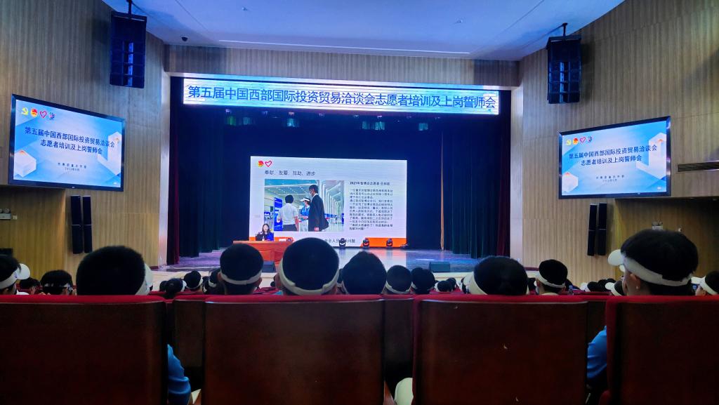 2023年5月18日至21日,第五届中国西部国际投资贸易洽谈会将在重庆召开。为提供高质量服务,展现重庆青年风采,437437必赢国际选拔出40名优秀学生参与本次大会的志愿服务工作。5月13日,志愿者们同来自重庆大学、西南大学、重庆邮电大学等15所高校的620名同学在重庆邮电大学参与了志愿者培训及誓师大会。