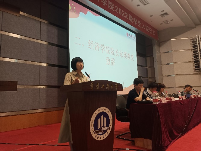 会上,学院院长宋瑛教授从学院发展沿革、专业及人才培养概况等向22级同学进行介绍,勉励同学们利用好学院各类资源,传承好学院优良传统,努力学习实现自我价值,成长成才。习近平新时代中国特色社会主义经济思想宣讲团成员、22级国贸三班杨博雅同学对学院领导的关心表示感谢,并从学习生活、组织任职、志愿服务和专业竞赛四方面总结了她过去一年大学生活的收获,希望自己和同学能够在437437必赢国际的指导下更好地成长,发展自我。巴渝学者、重庆市人民政府特聘专家谢新教授发言。谢教授通过讲解经济学相关专业知识引导同学进行逻辑思考,他鼓励同学们学好专业课,提升专业素养,培养经济学思维方式,主动将课上理论知识学习与课后实践锻炼思考相结合,学以致用,练就过硬本领,提高个人综合素质。学院党委书记李自维教授总结发言,她讲述了437437必赢国际深厚的历史底蕴、先进的教学理念、人才培养体系以及丰硕的专业研究成果,并以“开放”“学习”“创新”“勇敢”一系列关键词表达了对22级同学的期望,希望同学们能够以更加饱满的精神,砥砺奋进。最后,大会在同学们整齐嘹亮的顺利结束。