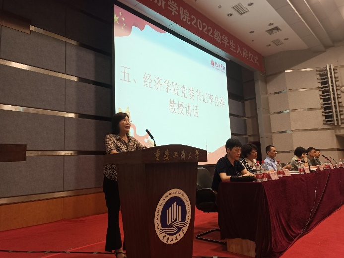 进一步加强学风建设,鼓励学院2022级学生踔厉奋发,7月4日下午,学院在博智楼7100报告厅举行了2022级学生年级大会。学院党委书记李自维教授、院长宋瑛教授、党委白海龙副书记、副院长尹元福博士,正处级组织员雷菁,巴渝学者、重庆市人民政府特聘专家谢新教授、财政税收系主任韩健教授,行政、学工全体老师以及2022级全体学生参加本次会议,会议由白海龙书记主持。