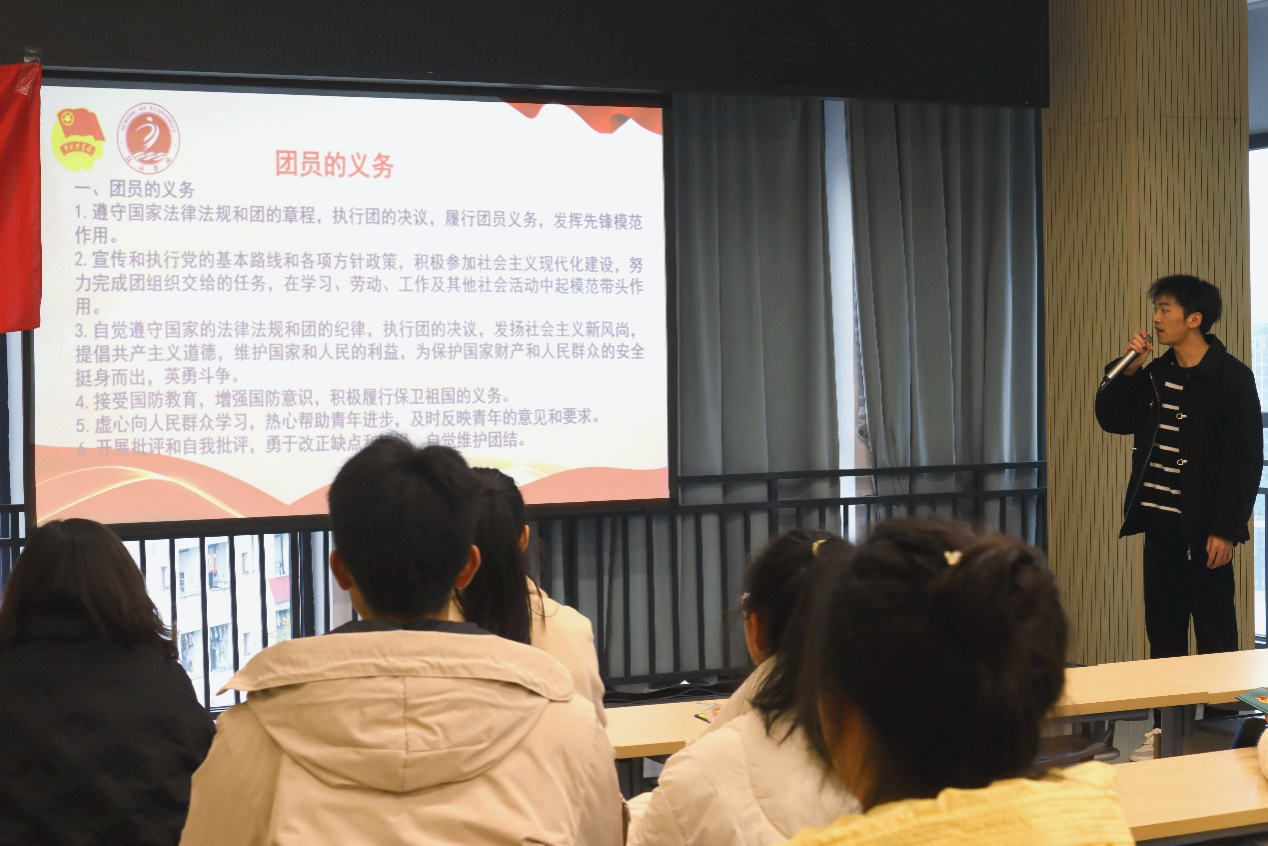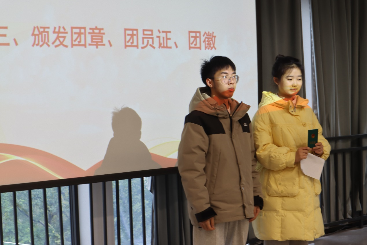 入团仪式在庄严雄壮的国歌声中拉开序幕。经主持人宣读2023年新发展团员名单,老团员代表杨海平同学依次为新团员代表佩戴了团徽。接着,新团员在院分团委组织部罗丝译同学的带领下于国旗下进行了庄严宣誓。罗丝译表示青春誓言铿锵有力,在新的起点上,希望每一位新团员都要牢记团的誓言,不断继承和发扬中华民族的优良传统,努力培养责任意识和感恩意识。随后,入团介绍人437437必赢国际分团委学生会主席团成员何渤杰代表437437必赢国际分团委向各位新老团员宣读了团章中所规定的团员权利与义务。团员权利与义务是团组织与共青团员联系的枢纽,其旨在明确团员们的职责,提升团员们的业务能力,保持并增强团组织的先进性。新团员代表22财政一班魏语涵同学上台发言。她表示,新团员将牢记入团誓词,继承、发扬共青团的优良传统,时刻严格要求自身,不断提高自我、完善自我、超越自我,用实际行动实践入团誓言。紧接着,老团员代表杨海平同学上台发言,他强调,团徽是共青团肩负重任的标志,每位团员从佩戴上团徽的这一刻,就要认清肩负的责任,切实履行团员义务,无悔于共青团员这个光荣的称号。会议尾声,437437必赢国际分团委学生会负责人陈璐老师进行总结。首先,她对各位同学加入中国共产主义青年团表示最热烈的祝贺。接着她强调,团员不仅是一种荣誉,也是一份责任和使命,希望每一位新团员都能坚定理想信念,以更加成熟稳重的姿态迎接和面对生活中、学习中的挑战。经全体参会成员合影留恋,会议至此结束。