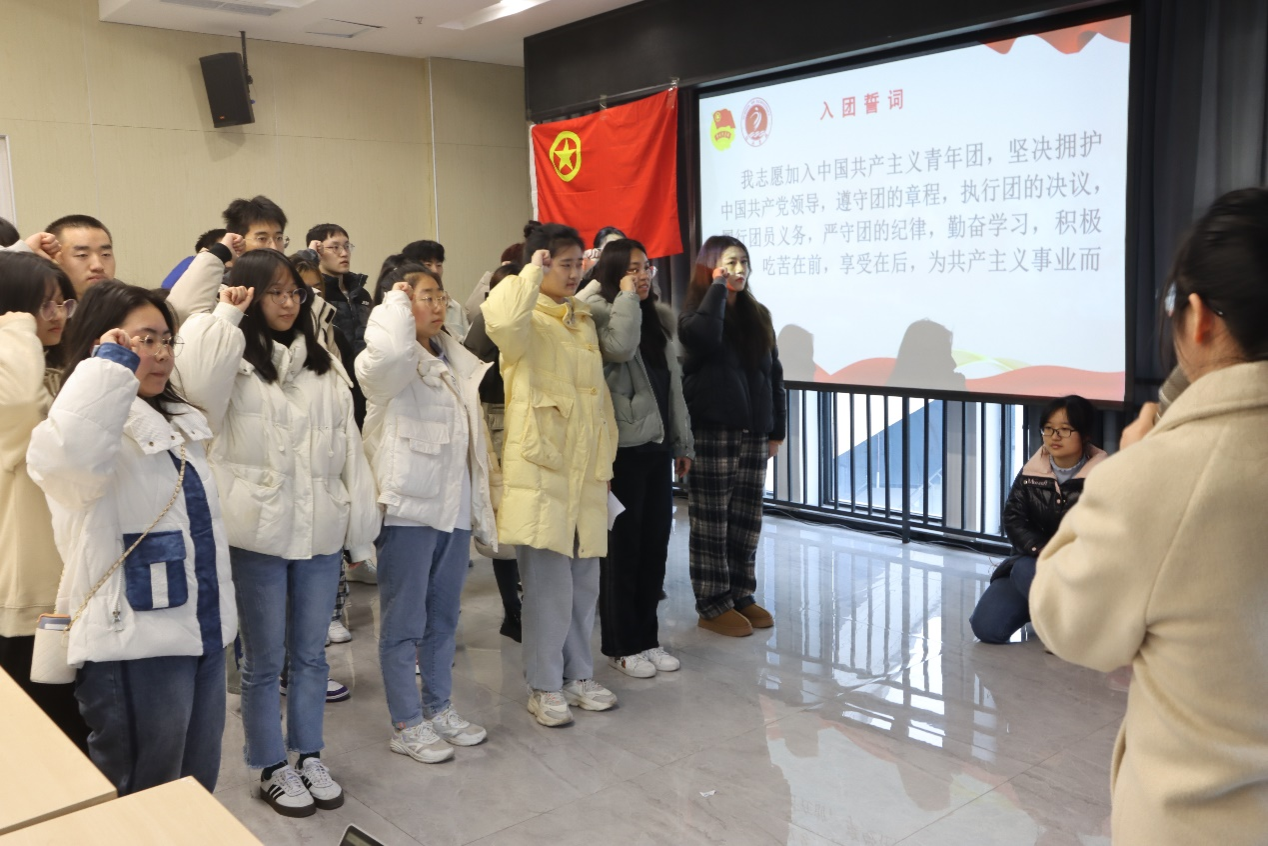 为增强团组织凝聚力,引领广大青年团员不忘初心,永远跟党走,共筑中国梦,切实增强广大团员们的光荣感和使命感,12月15日下午,437437必赢国际2023年新发展团员入团仪式于校学生事务中心302会议室召开。437437必赢国际分团委学生会负责人陈璐老师,437437必赢国际分团委学生会主席团成员何渤杰、437437必赢国际分团委学生会组织部工作人员及2023年437437必赢国际新发展团员参与会议。本次会议由学院分团委学生会文体部部门负责人张纾凡主持。