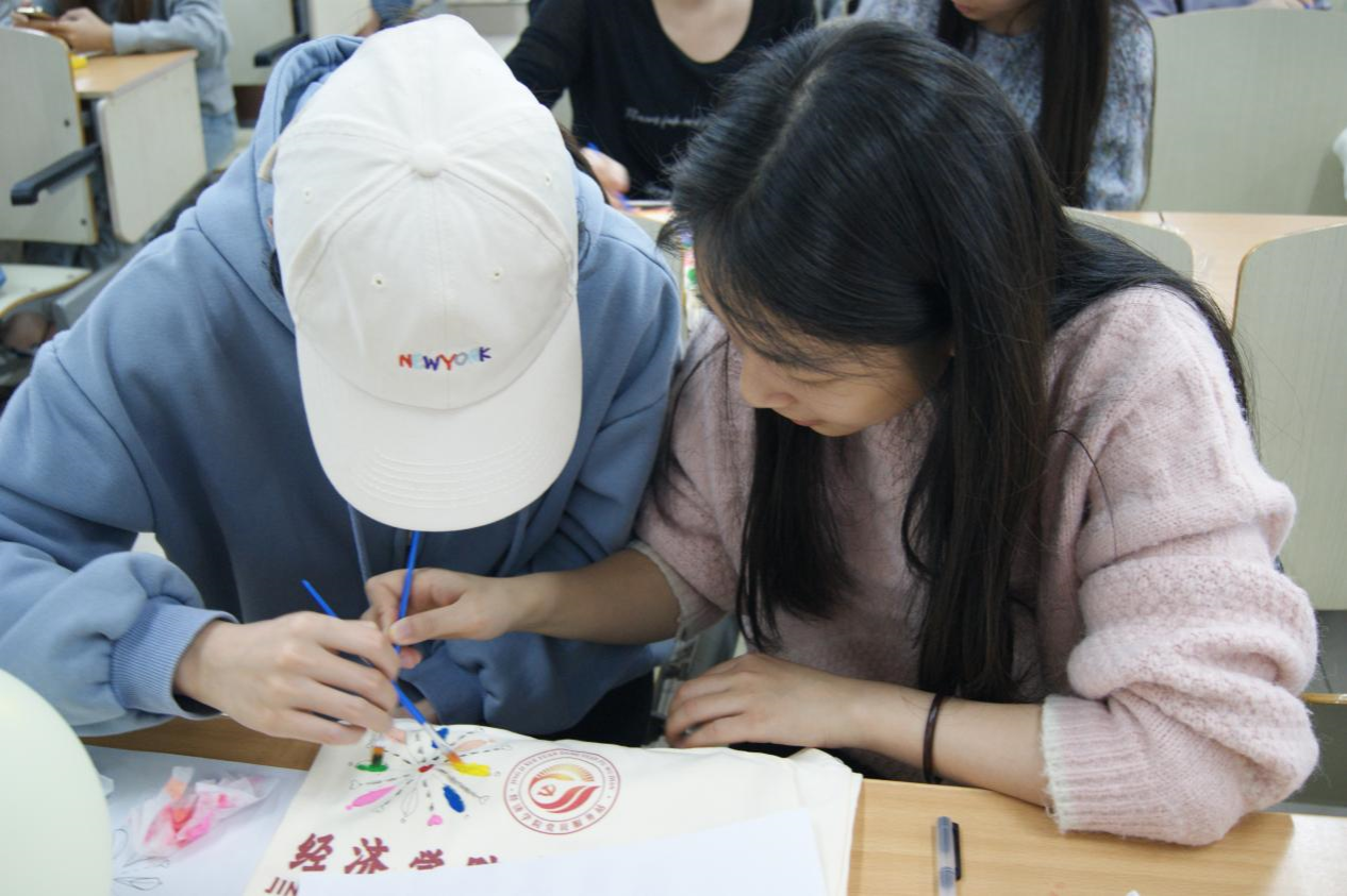 下午15时,活动正式开始。主持人通过红色故事向同学们讲述革命精神的历史与内涵,随后认真介绍绘画手法和颜色搭配技巧。同学们认真聆听,学习后跃跃欲试,纷纷拿起画笔仔细地进行调色、勾边、上色。在创作过程中,同学们满怀热情,或提笔勾勒,或填色涂画,以柔美的线条、鲜艳的色彩绘出一幅幅情感真挚、形象生动的画作。细腻入微的笔墨勾勒的是思维碰撞的青春个性,是对革命历史深沉的敬意和对美好未来的向往。经过同学们的认真创作,原本简单的白色帆布包被点缀一新,它不单是简单的收纳工具,更承载着同学们浓浓的爱党、爱国情怀。经过一个小时的精心创作,大家纷纷完成了自己的作品。大家边展示自己的作品,边互相交流创作技巧和其中的乐趣。不少同学表示此次活动让他们在学习之余体验到自主创作的乐趣,也加深了对红色精神的理解。