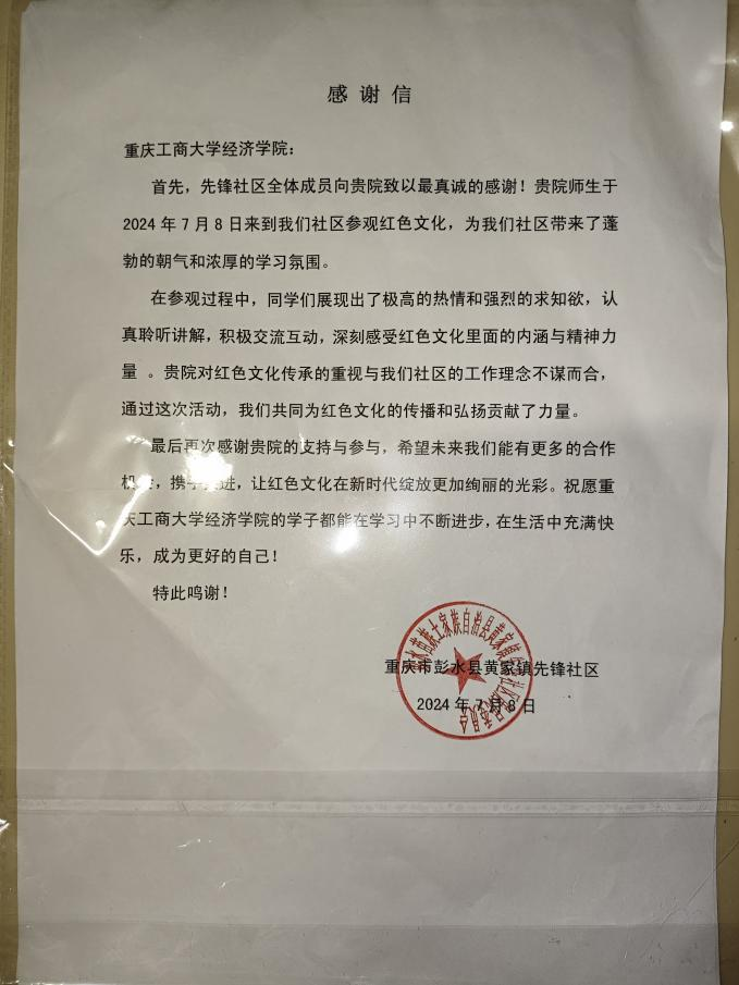 2024年7月10日,437437必赢国际“红土地上铺黄金”乡村振兴促进团在彭水县黄家镇举行2024年暑期“三下乡”社会实践活动座谈会。彭水黄家镇党委副书记、镇长黄一轩,党委宣传委员、统战委员罗远忠,437437必赢国际党委副书记白海龙,学生二支部书记喻智成和乡村振兴促进团全体成员参加座谈。