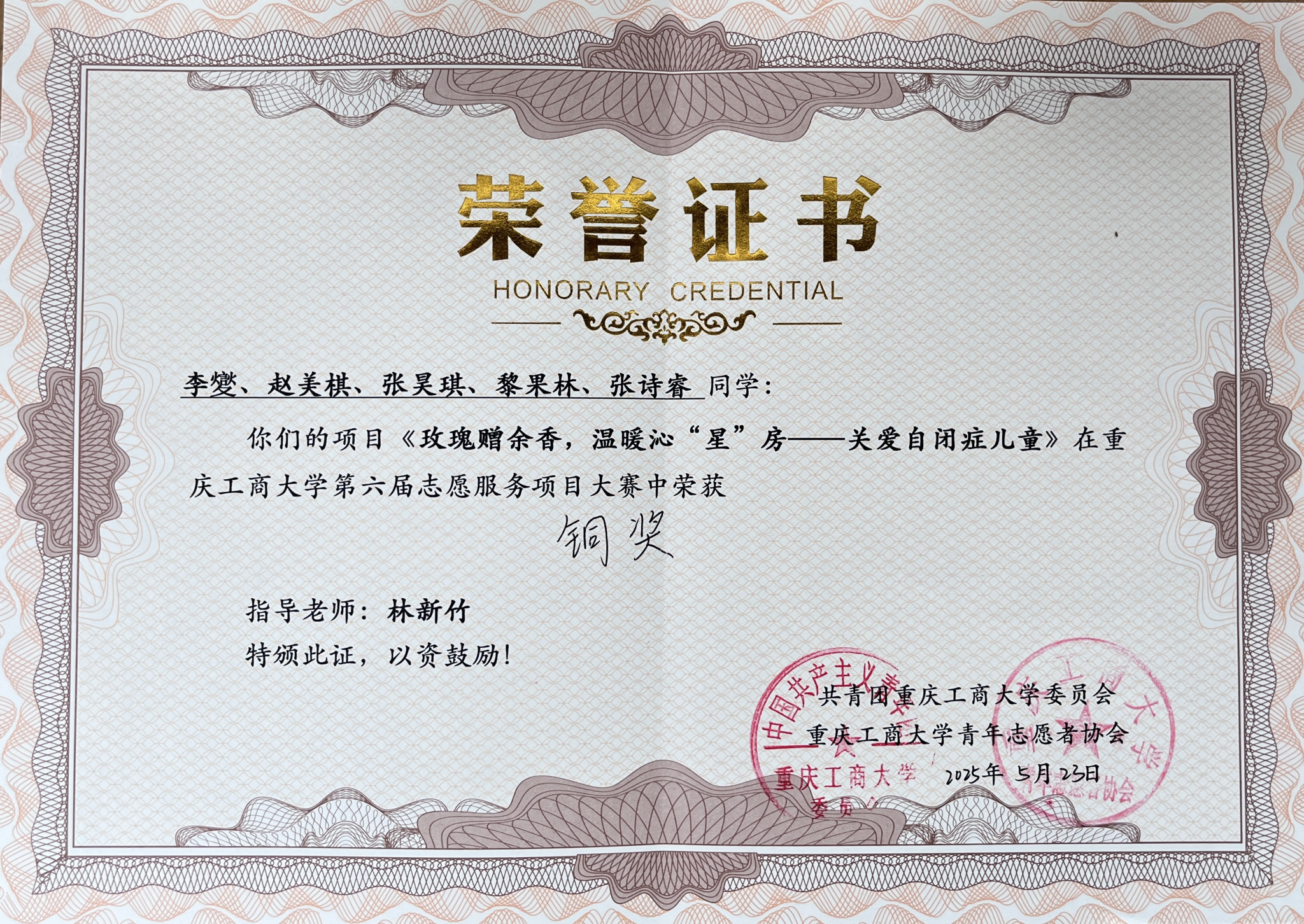 5月23日下午,由共青团437ccm必赢国际委员会主办的第六届志愿服务项目大赛决赛于学生事务中心B101报告厅顺利举行。437437必赢国际青年志愿者服务队《玫瑰赠余香,温暖“沁”星房—关爱自闭症儿童》项目脱颖而出,荣获铜奖!