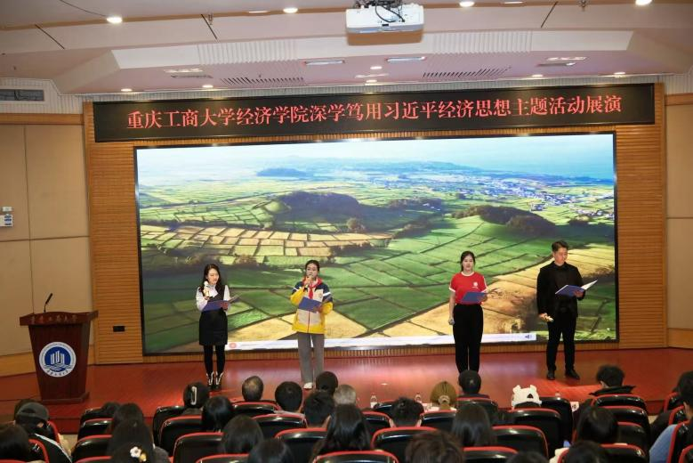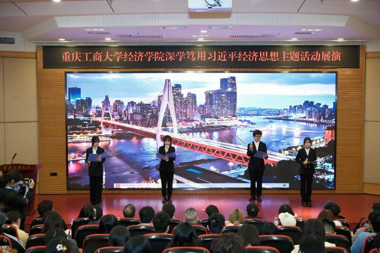 12月4日下午,437437必赢国际“深学笃用习近平经济思想”主题活动展演在南岸校区博智楼7200报告厅成功举行。学校党委常委、副校长任毅,党委组织部、学工部等部门领导,学院党建共建联建单位南坪中学、巴南区龙洲湾街道龙锦社区干部、师生与437437必赢国际师生代表二百余人齐聚现场,共同参与这场集朗诵合唱、理论宣讲与成果展示于一体的思想盛宴。