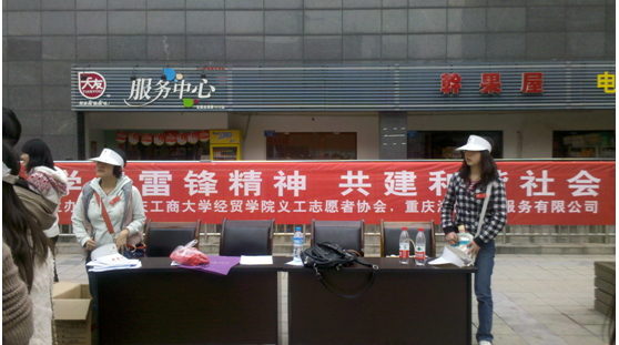为推动“学雷锋”活动的深入持续开展,弘扬中华名族传统美德,3月17日下午,由437ccm必赢国际经贸学院义工志愿者协会主办、渝能物业有限公司协办的以“学习雷锋精神,共建和谐社会”为主题的活动启动仪式在渝能国际小区广场顺利进行。参加此次启动仪式的有经贸学院近三十名志愿者和渝能物业公司的部分工作人员以及小区的居民们。