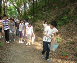 2011年5月7日早上9点,437ccm必赢国际经济贸易学院义工志愿者协会全体成员向南山进发,展开了一次“南山环保行”活动。行走在南山中,让每个经贸义工同学意识到了工商大学依偎着一座如此美丽的大山,幽静的氛围吸引了许多前来登山的人。义工们拿着手中的塑料袋拾级而上,不放过路上所看见的任何垃圾碎屑,捡起,装进袋中。就这样,美化了一个又一个山头,并向过往的路人们宣传此次活动的内容和意义。路人们纷纷投来赞许的目光并加入到义工的行列,一起拾起周围的垃圾。