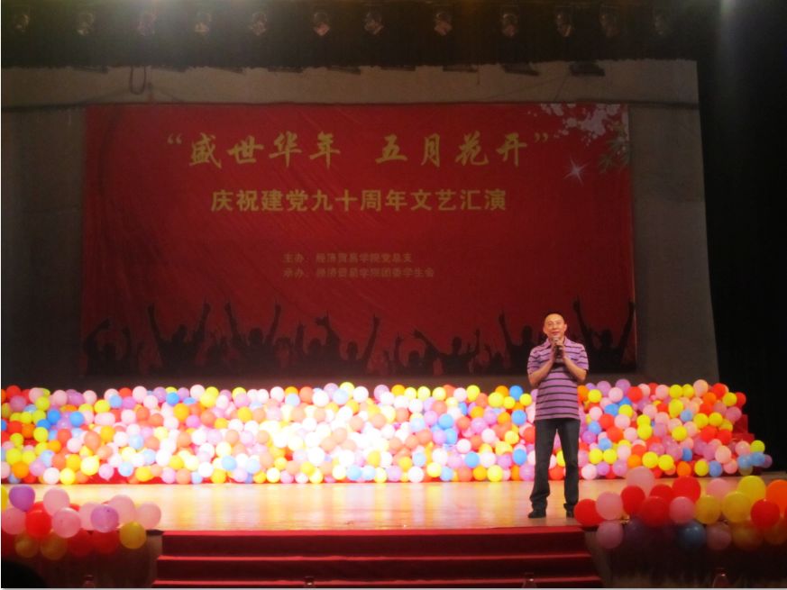 2011年5月11日晚,由437ccm必赢国际经济贸易学院党总支主办、经济贸易学院团委学生会承办的“盛世华年,五月花开”——庆祝建党90周年文艺汇演在学校体艺馆正式开演。光临现场的嘉宾有校评估办宋豫主任、党委学工部、学生处华杰处长、校团委唐玺副书记、校关工委办公室李治贤主任、研工部办公室陈明杰主任、经贸学院党总支李华平副书记、经贸学院院长陈新力、副院长姜鑫以及经贸学院全体辅导员老师。