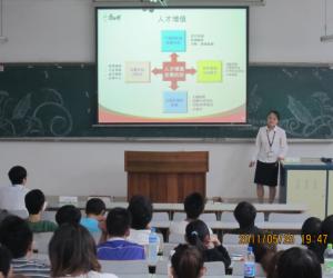 在大会伊始约十五分钟的宣传片的播放,让同学们对康师傅有限公司的发展历程有了初步认识。一流人才,创造一流产品,成就一流企业,回馈社会,永续经营”为企业核心价值和以“诚信,务实,创新”为经营理念。人性化的管理,创新化的经营,成就了而今家喻户晓、百姓耳熟能详的康师傅经典品牌。短暂的公司介绍之后,人资部科长为同学们尤其是大四学生带来康师傅有限公司在我们学校招募人才的好消息。在介绍完了招聘信息之后,同学们对康师傅公司“康、勤、能”的用人理念和教育训练发展体系十分感兴趣,纷纷就此向人资部科长提出各种问题,人资部科长面带微笑,以流利的口才、幽默的言语和海量的专业知识为同学们一一解答。