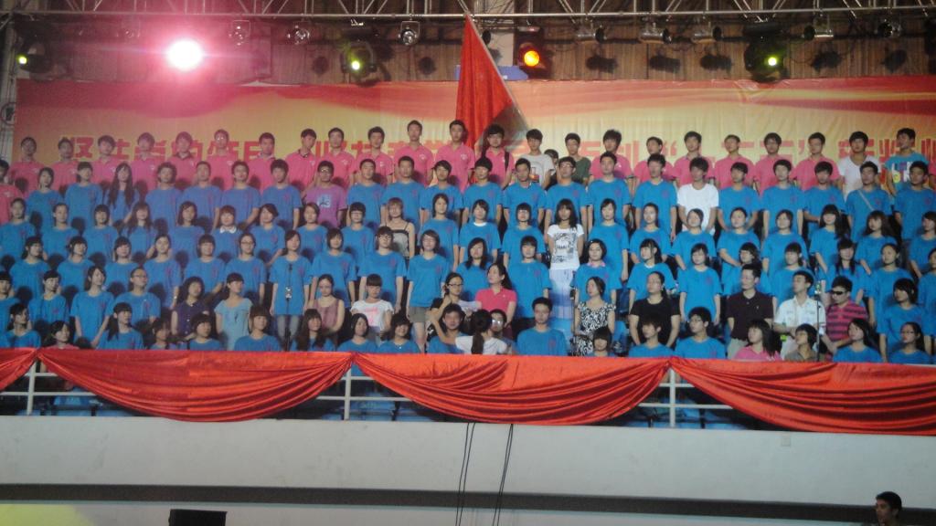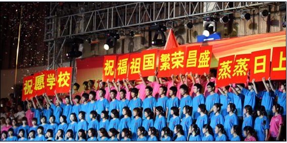 为了献歌给亲爱的党,经贸学院师生经过了精心的准备和排练,在此次音乐会上用浑厚的歌声和饱满的热情于热烈的掌声中演绎了歌曲《祝福祖国》,向全校师生展示了经贸学院的动人风采。音乐会最后,全体演员合唱《没有共产党就没有新中国》,将现场气氛再一次推向高潮,也为此次音乐会拉下了帷幕。