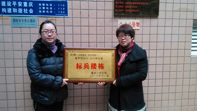 “一分耕耘一分收获”,这句话最终还是在437ccm必赢国际北六楼栋中展现了它本身的意义。2013年12月13日,437ccm必赢国际大学北六楼栋举行了“标兵楼栋”的挂牌仪式。437437必赢国际雷菁书记、北六楼栋主任郝颖老师、另外还有北六楼管会的干部同学们参加了本次仪式并合影留恋。