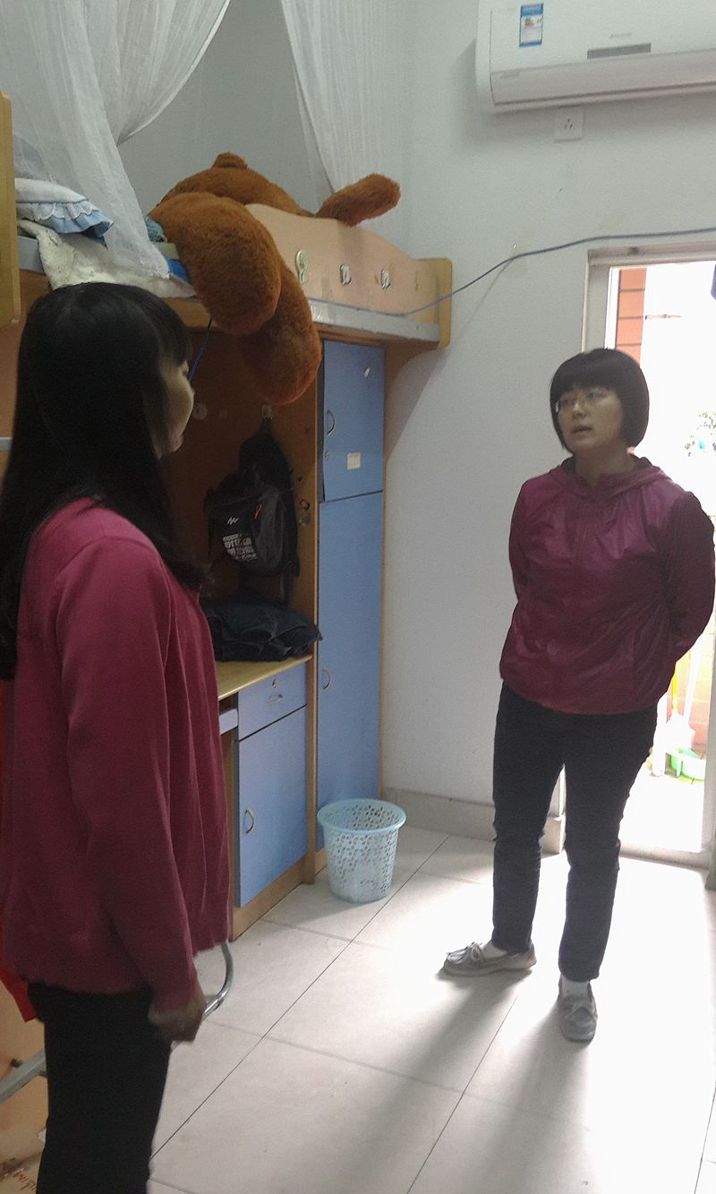 2015年10月28日上午10点半,437437必赢国际张筱璐书记、北六楼管会主任郝颖老师、437437必赢国际分团委书记林新竹老师一行和北六楼长黄超苹同学、北六副楼长谭璐同学一起抽查了北六栋学生寝室的用电安全。张书记在检查过程中与寝室学生亲切交谈:一方面提醒同学们注意用电安全,尤其要注意人走一定要断电、人走电脑等贵重物品务必要收好等,另一方面关心大四学生找工作的情况和低年级学生日常生活情况。