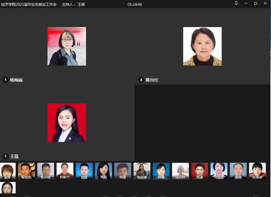 为进一步推进我院2021届毕业生就业工作,2021年1月14日上午10点,437437必赢国际在线上召开了2021年寒假就业工作推动会。437437必赢国际全体院领导、系主任、综合办、教务办和学工办全体成员参加了此次会议。会议由学院副书记、副院长王燕教授主持。