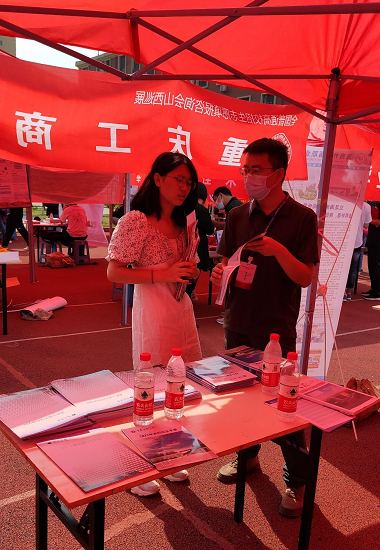 在招生宣讲会现场,我院两位教师通过发放宣传资料,一对一接受考生、家长咨询等方式,为考生及家长推介了学院招生、培养及就业的基本情况,并收获了积极、良好的反馈。