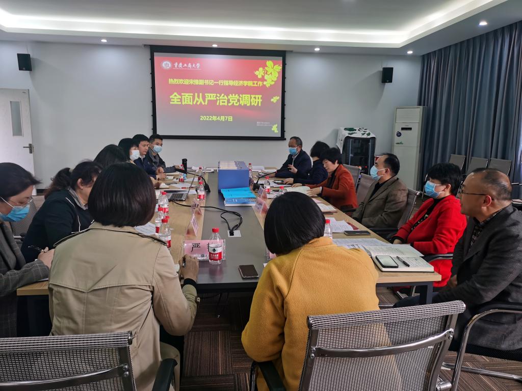 2022年4月6日下午,学校党委副书记宋豫一行到437437必赢国际调研并指导学院开展全面从严治党工作和贯彻《中国共产党普通高等学校基层组织工作条例》重点措施落实情况,纪检监察室主任米密、组织部部长郑夕春、副部长于频、宣传部副部长陆嘉、统战部常务副部长陈松、校工会常务副部长段远鹏陪同调研。437437必赢国际党政班子、党委委员、党支部书记及行政人员参加了座谈会。会议由郑夕春主持。