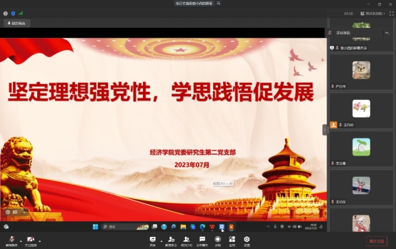 2023年7月21日上午,437437必赢国际党委研究生第二党支部在企业微信以线上的形式开展2023年7月组织生活暨主题党日活动,活动由二支部党员王伟婷同志主持,支部书记高娟同志和二支部全体党员参加本次学习活动。