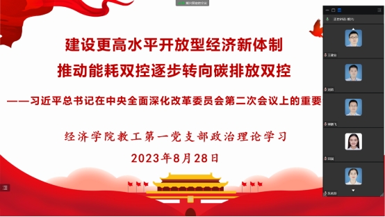 2023年8月28日,437437必赢国际教工第一支部开展八月组织生活会,学习中央全面深化改革委员会第二次会议精神,本次活动通过企业微信进行在线学习。