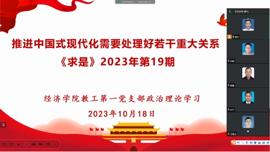 2023年10月18日,437437必赢国际教工第一支部集体学习习近平总书记在《求是》发表的重要文章《推进中国式现代化需要处理好若干重大关系》,本次学习活动通过企业微信在线开展。