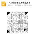 游学时间拟定于8月11日-8月24日(具体日期以剑桥大学安排为准),拟报名参加项目的学生请于4月17日以前,扫码填写项目报名表。计划选拔20-25名同学。