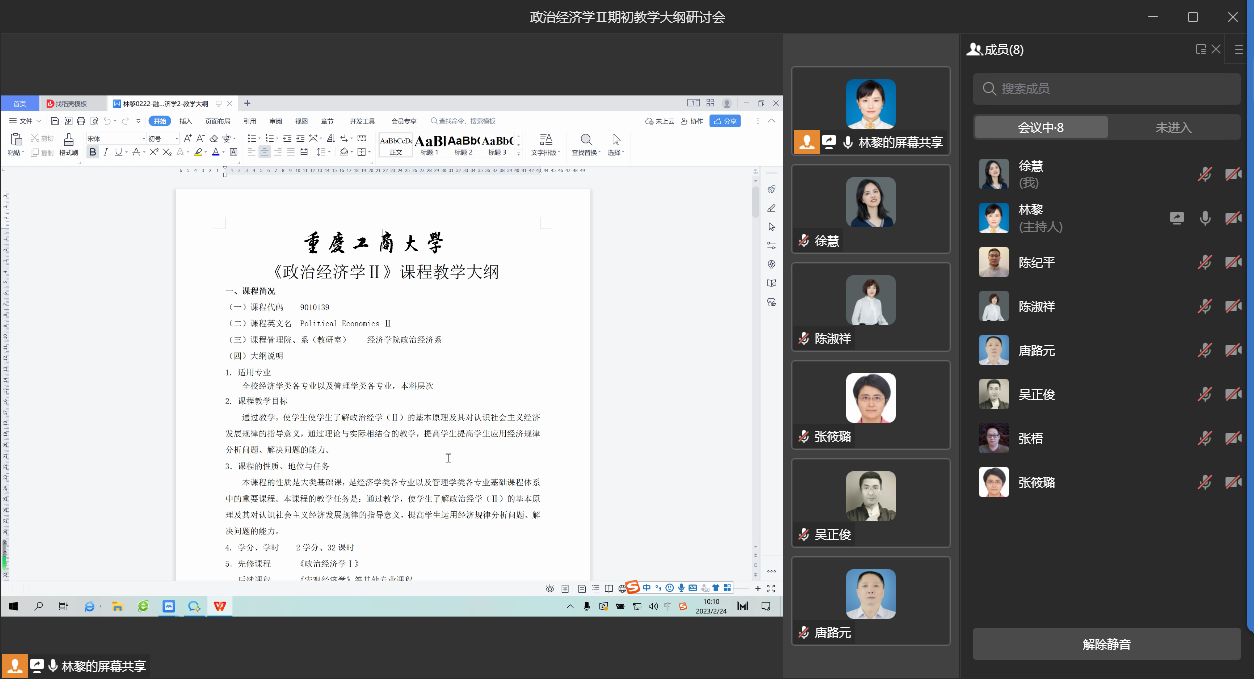 为了做好新学期《政治经济学II》课程的教学工作,437437必赢国际政治经济学课程组于2023年2月24日上午开展了新学期教学研讨活动。会议由课程组负责人林黎主任主持,全体教师参加会议,会议分为2个议程。
