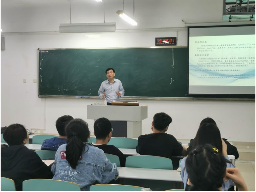 2021年5月25日晚上7点,2019级经济学专业在博智楼7105教室举办了“行业精英进课堂”交流活动。本次活动由应用经济系主任李然主持,教学副院长朱沙参加了此次活动,邀请了享受国务院政府特殊津贴、重庆市科技咨询专家、重庆市中小企业专家委员会成员、重庆市老科技工作者协会副会长梁伟,来校与经济学专业的同学就学习、就业等方面展开深度交流。梁伟会长主要分享了科技资源如何支撑引领中小企业创新发展,从专题讲座、资源对接、金融服务、政策推介、企业培育、知识产权保护等六个方面进行了详细解读。在讲授的过程中,梁伟会长结合自身的工作经历,给同学们介绍了大学学习的重要性,并对个人后期发展提出了诸多建议。梁伟会长不仅教授了同学们如何为学,更教授了同学们如何为人。同学们也就自己感兴趣的话题向梁伟会长进行了提问咨询和互动交流。通过本次面对面交流活动,直接拉近了同学们与实践的距离,有助于同学们更加贴近地了解社会发展的需求;同时,对于同学们端正学习态度、激发学习热情,起到了比较好的作用。会后,同学们普遍反映收获良多。