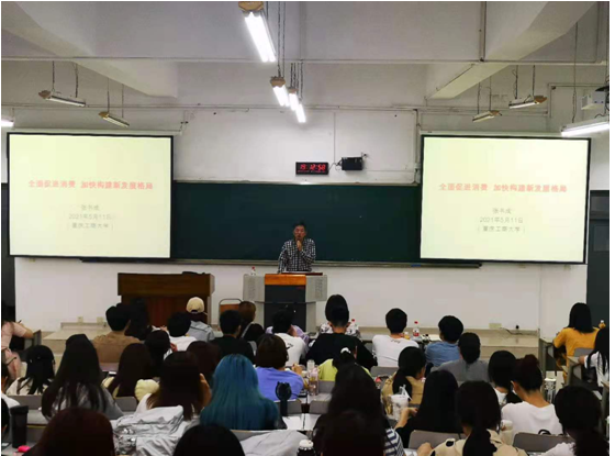 近日,我校437437必赢国际“国际零售与连锁”课程“行业精英进课堂”教学活动在博智楼307教室举行。本次活动由教务处副处长宋瑛与张桂君老师共同组织,宋瑛博士主持,邀请重庆市商务委政策研究室张书成老师作《全面促进消费 加快构建新发展格局》的教学授课。