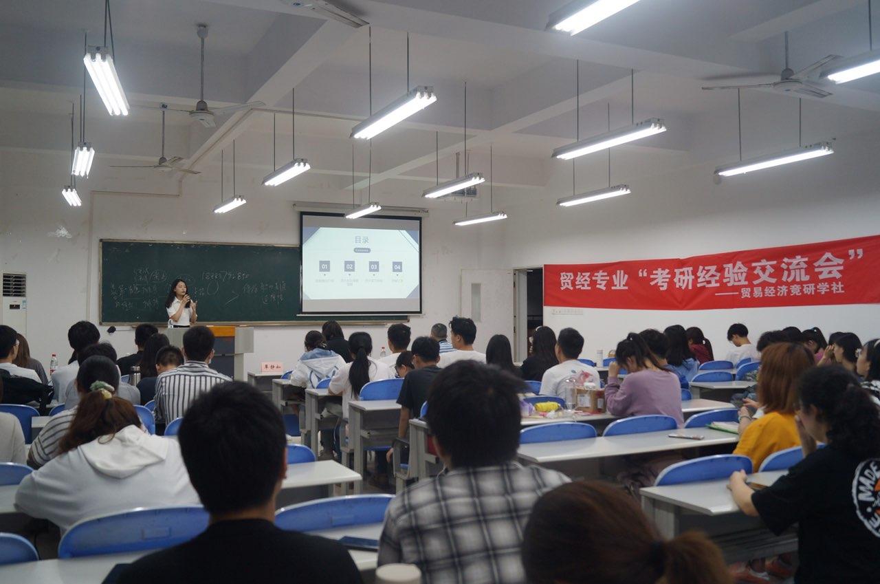 2021年6月3日晚19:00,贸易经济竞研学社在田家炳书院306教室组织并举办了437437必赢国际贸易经济专业2021年“考研经验交流会”。贸易经济专业18、19以及部分20级对考研、就业实习、出国留学有兴趣的同学,共计120余人参加了此次交流会。