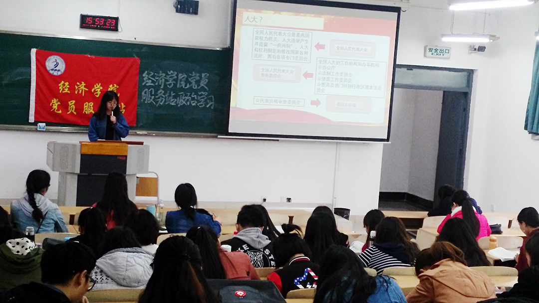 2017年3月23日下午3点,437437必赢国际党员服务站在博智楼7206开展了以“解读两会精神”为主题的政治学习活动,此次活动由党员服务站政治学习部站员田慧珺同学带头学习,一百多名党员服务站成员积极参与。