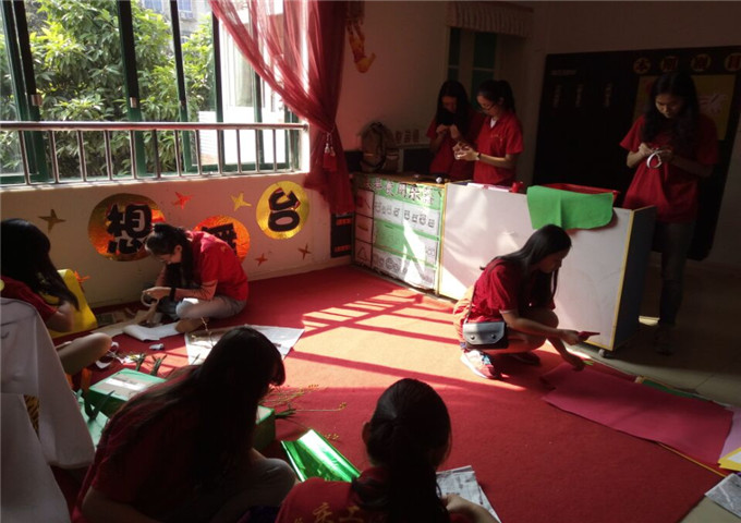 10月22日,北六党服的多名同学在课余时间前往437ccm必赢国际新村幼儿园为小朋友们精心准备第二天“虚拟餐厅”课堂活动使用到的一些手工作品,通过自己的简单劳动为小朋友的课堂增添趣味。