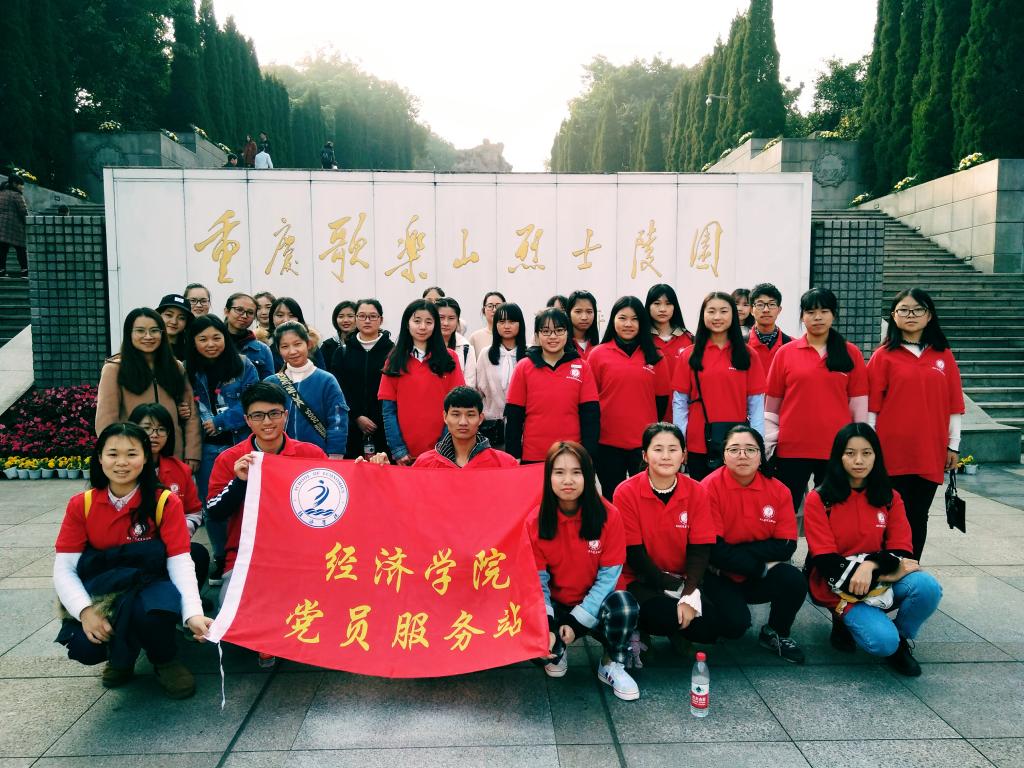 2017年11月26日,在“11·27”红岩英烈殉难68周年到来之际,437437必赢国际党员服务站携经济学子共同前往重庆歌乐山烈士陵园祭祀英烈。在雄伟壮丽的红岩魂广场一期台阶与烈士公墓之间,庄严肃穆的歌乐山烈士群雕巍然耸立,直入云天。